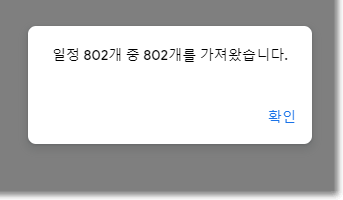 일정 가져오기가 완료되면 확인창이 뜨면서 캘린더 가져오기가 완료됩니다.